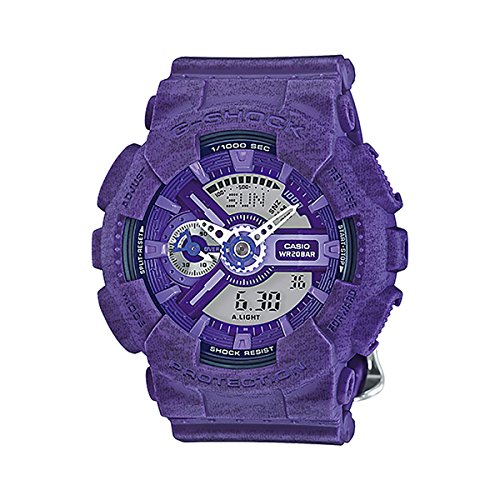 The recent release of the GA-110HT full-size models is the G-Shock GMAS-110HT Heathered S Series for women. While the men's release had a more conservative selection of black, blue, white, and gray, the women's series gets more colorful choices including the GMA-S110HT-4A (orange), GMA-S110HT-6A (purple), GMA-S110HT-7A (white), and GMA-S110HT-9A (yellow). The Heathered Series is known for having a textured look that resembles fabric, and the colors on these models extends to the watch face. These smaller women's models measuring 49 X 45.9 X 15.8 mm make a great "his 'n' hers" combo with the larger modelsFeature