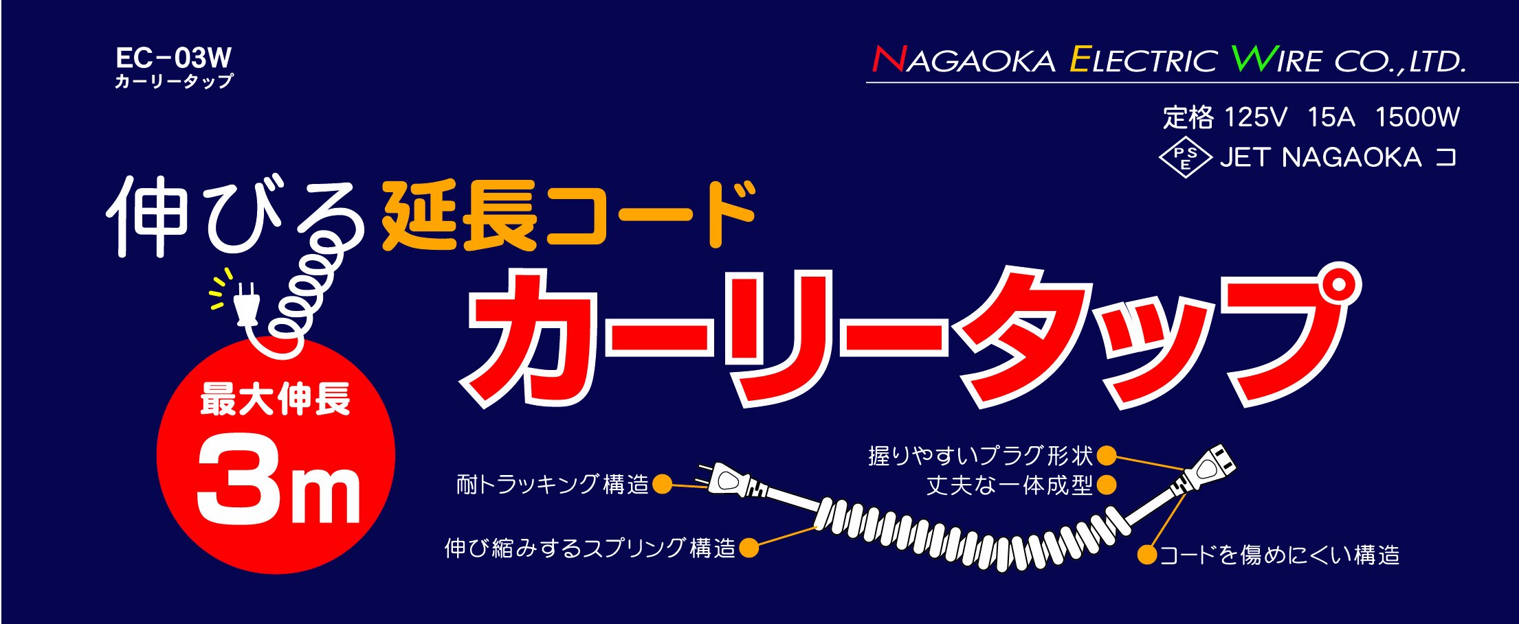 ● Curled cord of special structure excellent in stretchability was made "extension cord".