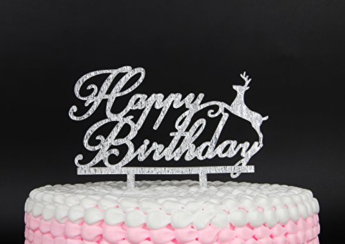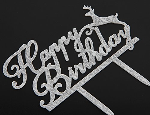 Happy Birthday Cake Topper- Silver Deer Cake Topper