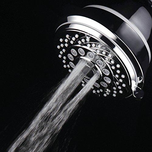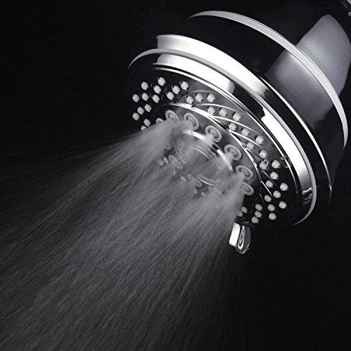 SHOWER HEAD: 6 Full Setting Shower Head • 4-inch Chrome Face • 3-zone Click Lever Dial • Rub-clean Jets • Angle-adjustable • SpiralFlo Design