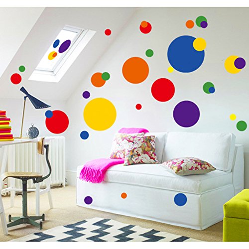 -. Title : Colorful Round Circles Wall Decal PVC Home Sticker House Vinyl Paper Decoration WallPaper Living Room Bedroom Kitchen Art Picture DIY Murals Girls Boys kids Nursery Baby Playroom Decor
