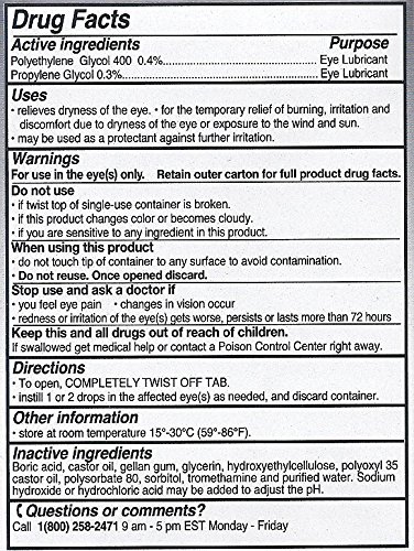 - Feature : Preservative free lubricant gel eye drops / Soothing comfort / May be used as a protectant against further irritation / Long lasting severe dry eye therapy / Temporary relief of burning, irritation and discomfort due to dryness of the eye or exposure to the wind and sun
