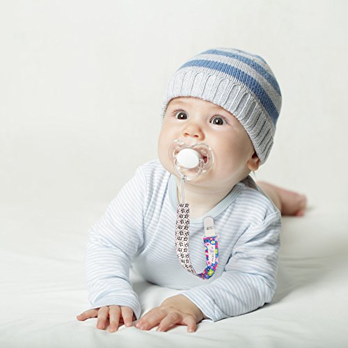 UNIVERSAL FIT - Our baby pacifier clip fits most brands of pacifiers and will hold them in place. No more losing your precious soothers or having to pick them up from the dirt anymore