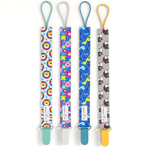 Angels UP Double-Side Leash Design Pacifier Clip for Baby, 4-Pack