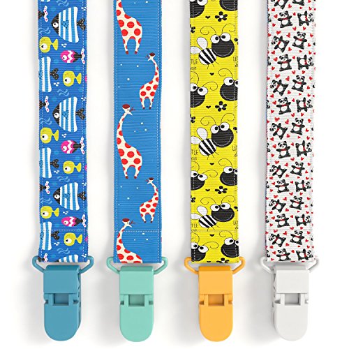 CUTE UNISEX DESIGNS - Fun colors and great designs on both sides of the baby pacifier clip ensure that both girls and boys will love this soother clip