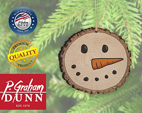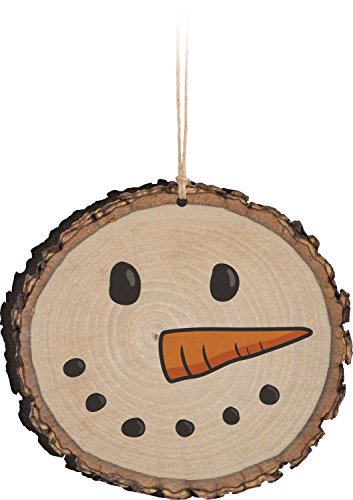 Snowman Face Rustic Bark Look Wood Christmas Ornament