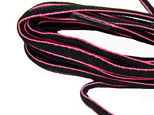 Product DescriptionBrilliant color and fashionable oval design Black with just a touch of neon pink color Athletic sneaker Shoelaces. Perfect and exact replacement laces for any quality athletic shoe.0