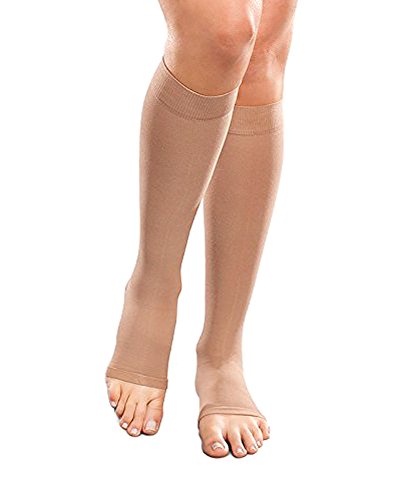 Ease Opaque Open-Toe Knee Highs - 20-30mmHg Moderate Compression Stockings (Sand, Medium Short)
