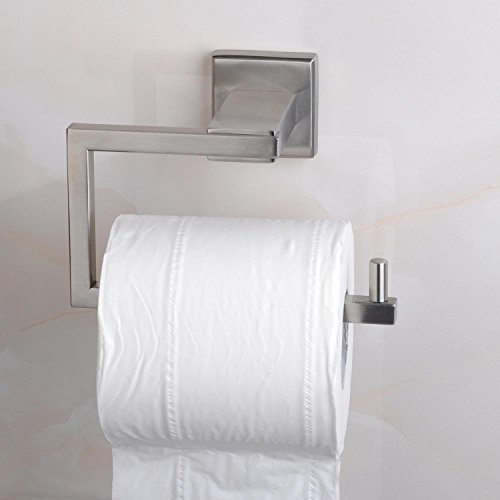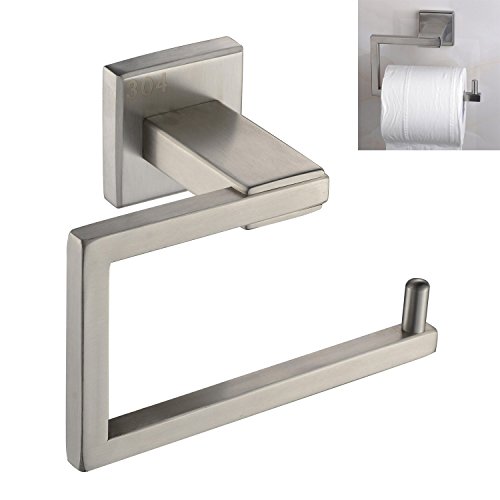 Contemporary 304 Stainless Steel Square Brushed Wall Mount Toilet Paper Holder Roll, Bathroom Storage