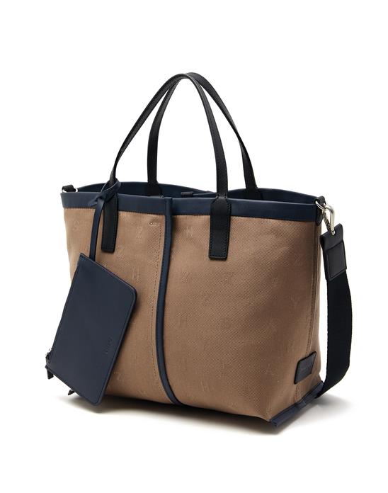 모던한 아이보리 컬러에 레터링 패턴과 부분 네이비 배색으로 포인트를 준 크로스백 겸용 토트백 입니다.