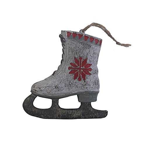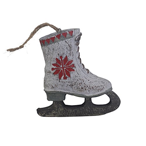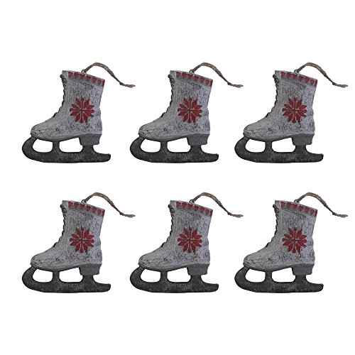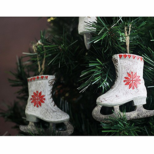 Fargal Resin 4" White Ice Skates With Poinsettia Pattern Christmas Tree Ornament Set (set of 6)