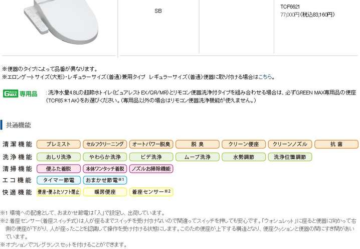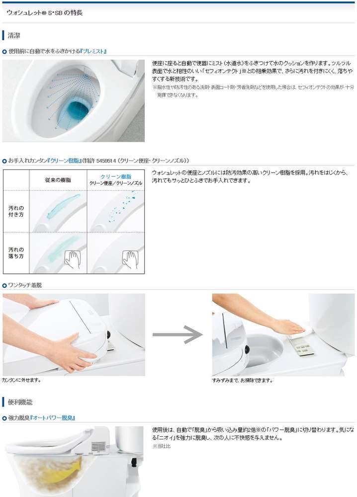 ●ウォシュレットの便座とノズルには防汚効果の高いクリーン樹脂を採用。