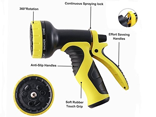 Premium Quality 9 Multifunctional Spray Gun: SHOWER - CONE - JET - SOAKER - ANGLE - MIST - CNETER - FULL - FLAT. Choose your loved style accordingly ! Best for Gardening,Lawns, Plants & Shrubs, Washing Cars, Dogs + Pets or other.