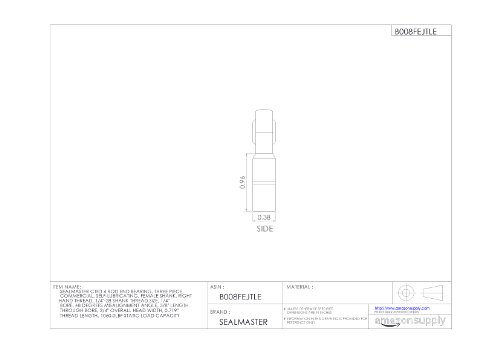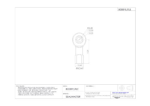 Sealmaster CTFD 4 Rod End Bearing, Three Piece, Commercial, Self-Lubricating, Female Shank, Right Hand Thread, 1/4"-28 Shank Thread Size, 1/4" Bore, ±8 degrees Misalignment Angle, 3/8" Length Through Bore, 3/4" Overall Head Width, 0.719" Thread Length, 10