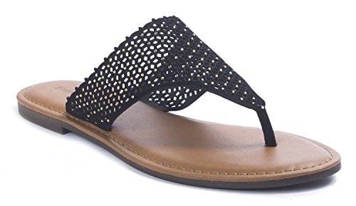 Pierre Dumas Women's Azaria-7 Vegan Leather Perforated Accents Flip-Flops Flats Sandals, Black,...