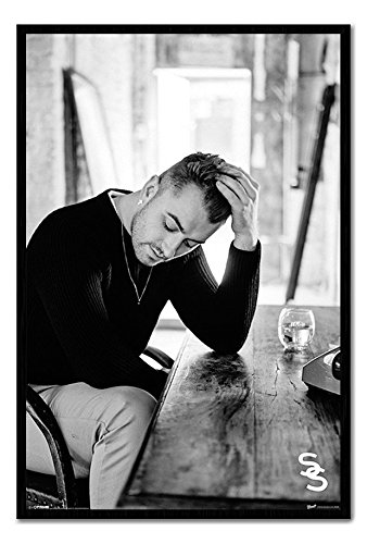 -. Title : Sam Smith Leaning On Desk Poster Magnetic Notice Board Black Framed - 96.5 x 66 cms (Approx 38 x 26 inches)