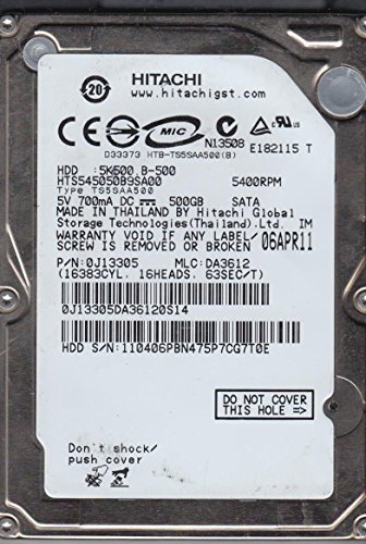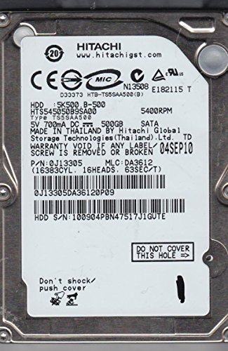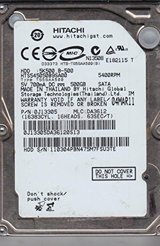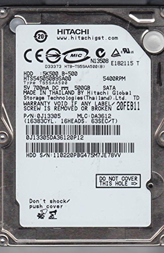 Hitachi Hard Drive SATA 9.5mm 500GB 2.5in 5400RPM HTS545050B9SA00
