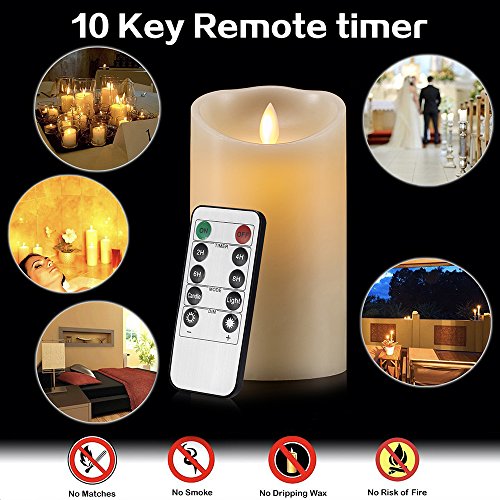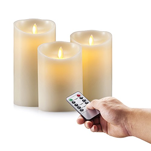 Air Zuker Flameless Candles Super-long Battery Life Dancing Flame Wax Pillar LED Candle with Timer and 10-key Remote, 300 Hours Lighting, C-Cell Battery[not-included], Height 5" 6" 7", 3 pieces
