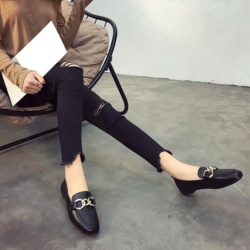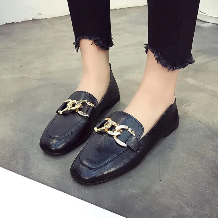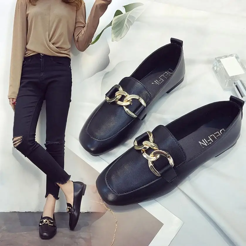 Model Number:Metal buckle solid color casual shoes flat shoes shoes