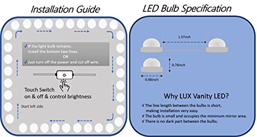 The length of wire only 1.37 inches between bulb and bulb so constant brightness and can be easily installed on any type of mirror.