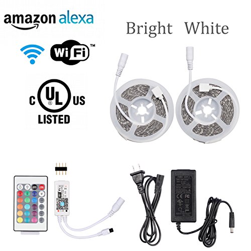 PierShine Alexa Wifi Bright White Non-Waterproof LED Strip Light 32.8ft with 600Leds UL Listed Adapter, Freely DIY cutting, Compatible with Alexa and IFTTT (SMD2835 Bright White)