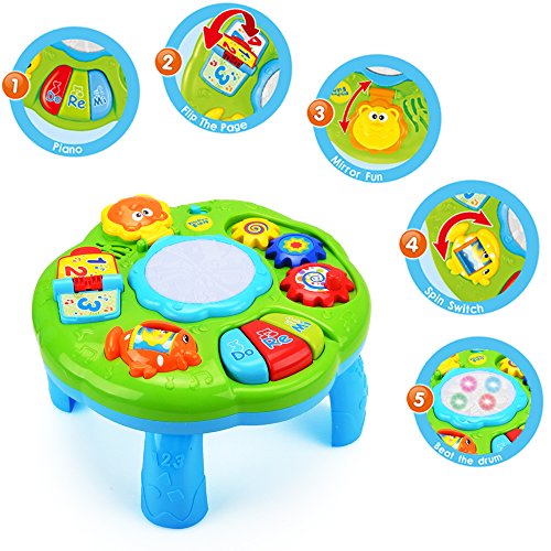 -. Binding : Toy -. Brand : Happy-Time -. Color : green -. EAN : 4847697653012 -. Feature : 【DRUM FUNCTION】Little baby can tap the drum in the middle of the desk to feel the rhythm with light up and sound effect / 【BABY TOYS】Lights up and allows for free play, classic melodies, and also introduces baby to colors and Do Re Mi / 【ADDITIONAL FUNCTION】The music table can be tied on the bed for your little infant play it. The tie rope have set with the board. Turn the gears on the infant toy to strengthen fine motor skills / 【ENTERTAINING TABLE】Legs are assembled, removable and sturdy. So your boys girls can use the sound toys from 6 months+ sitting to 2 years old standing play / 【GREAT GIFT】Made from safe and non toxic ABS plastic. Great gift idea for any occasion! Sit-to-stand learning walker.1.5V AA batteries required(not included) -. IsAdultProduct : 0 -. Label : Baby Art Park -. Manufacturer : Baby Art Park -. MPN : BN16014 -. PackageQuantity : 1 -. PartNumber : BN16014 -. ProductGroup : Toy -. ProductTypeName : TOYS_AND_GAMES -. Publisher : Baby Art Park -. Studio : Baby Art Park -. Title : Musical Learning Table Baby Toys - Hanmun ZM16029 Electronic Educational Toys for 6 month+ Toddlers Early Development Activity Toy (Green)
