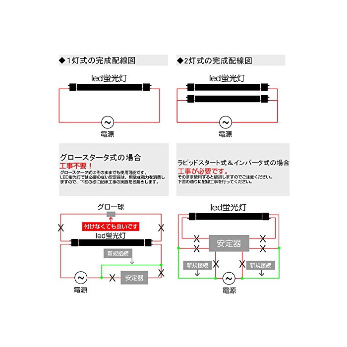 원본상품명: LED光 20W形 直管 led 10W 光管20W形 58cm 580mm 光色 グロ式工事不要 20W形 G13 照明 光管 【1本入り】