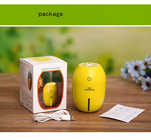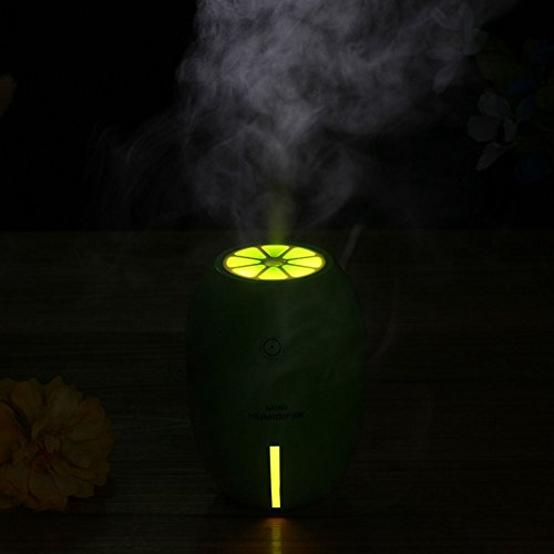 Mini Cool Mist Humidifier, 180ml USB portable Ultrasonic purifier for Car and office 4 hours Auto Shut-off and Cute Lemon Night Light (green)