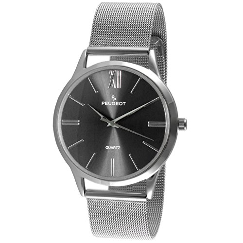 -. Title : Peugeot Men's Stainless Steel Slim Case Watch with Mesh band - Black Dial