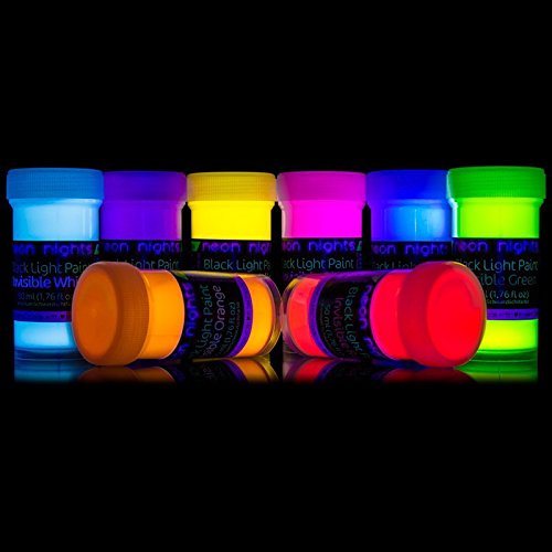 neon nights Invisible Ultraviolet | UV | Black Light | Fluorescent Glow Paint - Set of 8 by neon nights