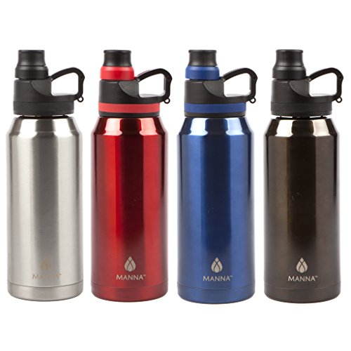 BEVERAGES STAY HOT OR COLD ALL DAY - The Manna 50 oz Jumbo Metallic bottle features premium double-layer vacuum insulation walls that prevent cold drinks from getting warm for 12 hours. Thanks to this innovative technology, your coffee or tea stays piping hot up to 8 hours.