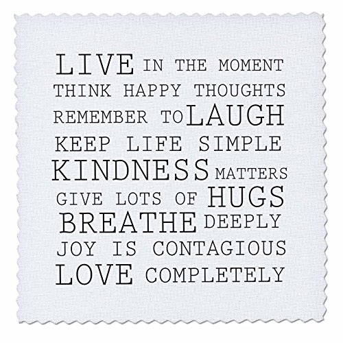 3dRose qs_179040_1 Inspirational Words Black and White Text Quilt Square, 10 by 10-Inch