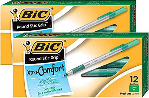 -. Title : BIC Round Stic Grip Xtra Comfort Ball Pen Medium Pt 1.2mm Green 2DOZEN GSMG11GN