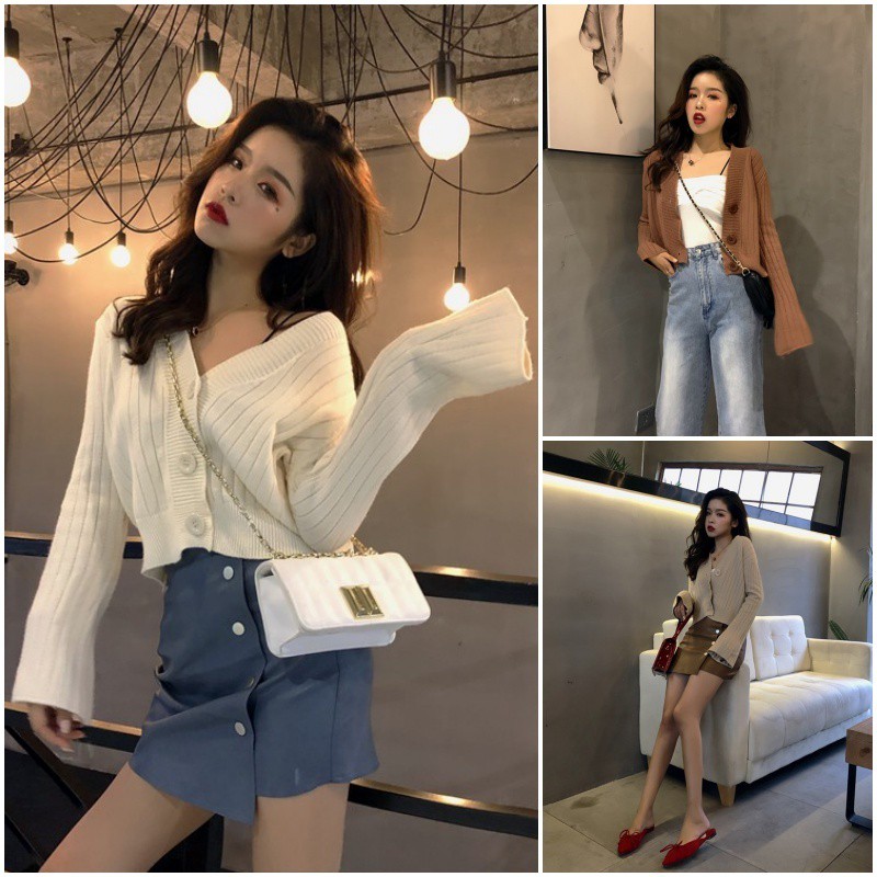 ♢ポイント♢ ショート丈のカーディガンは、今年大人気のハイウエストデザインや、ロング丈ボトムスなどとの相性抜群◎ Vネックになっているので抜け感をプラス、すっきりとしたバランスの良いコーディネートに仕上げてくれます♪