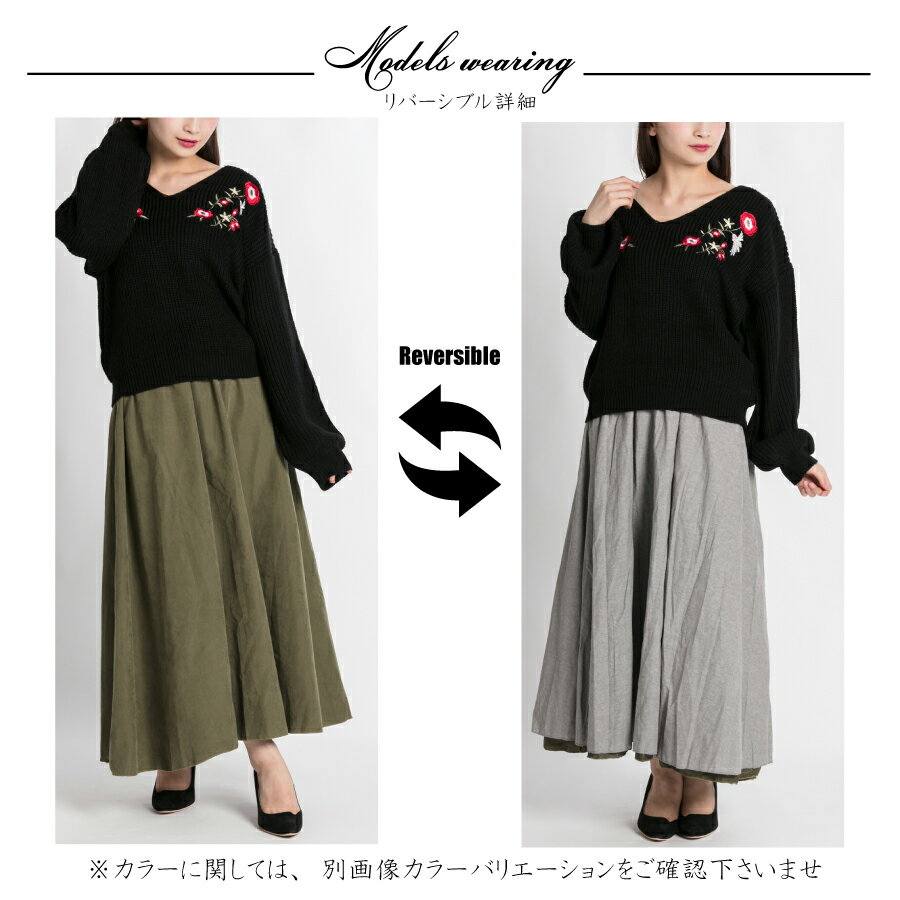 リバーシブルスカートです。表側と裏側でカラーが違うのでスタイリングが楽しめます。