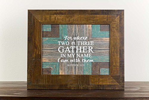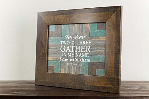 For Where two or three Gather In My Name Matthew 18:20 Framed Picture Decor Barnwood 13x16"