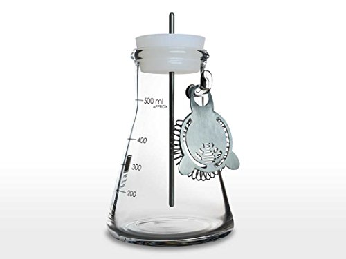 -. Feature : Hard Science meets Iconic Design / Make, shake, stir, and pour your cocktail experiments with scientific flair / Includes; 500 ml Flask, Food Safe Silicone Plug, Stainless Steel Cocktail Strainer and Stirring Rod / Dishwasher Safe