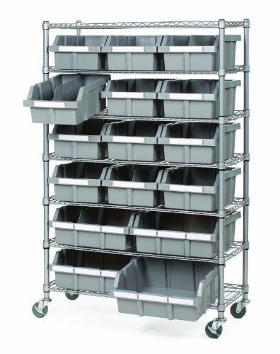 Seville Classics Commercial Bin Rack System Make sorting your stuff easy with our patented 7 Shelf Commercial Bin Rack System. The polypropylene (PP) bins slide out easily and lock into place to ensure effortless and efficient storing. This convenient storage solution helps organize all your little knick-knacks and is perfect for use in a retail environment, garages, warehouses, restaurants, mail rooms, schools, offices or work centers. You can also buy extra dividers in a 6-pk. They will fit both sized bins. Product Measures: 36 x 14 x 56; Dividers: 13 x 6.25 Features: - Includes: 16 PP bins (12 Large, 4 XL), 4 bin dividers, bin labels, and a set of 3" Grey Wheels (4pcs, two locking)