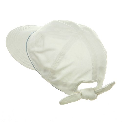 Studio : e4Hats.com Publisher : e4Hats.com Binding : Apparel Product Description For a look filled with class and sophistication, make sure and choose our white canvas cap with piping decoration. Made from 100% cotton, this lightweight and soft casual cap is the perfect hat while out this summer and you need an above average look. Featuring a 3 1/2 deep crown with white piping decoration encircling its base, and a 3 1/4 long front bill, with contrasting color underside, this stylish hat offers you amazing protection from the sun and its foes. Completing this classy cap is a bow tie closure in the back, ensuring you have a fit that works best for your chosen activity. Get one in any or many of our vibrant colors today! Made of 100 % Cotton. One size fits most with Bow Tie(up to 7 3/8). Front bill measures 3 1/4" long and 9 1/2" Wide. Contrasting under Bill. Crown measures 3 1/2" Deep. Casual Style Soft Bill. Hand wash only. Imported. Available in 6 colors: Black, Red, Putty, White, Lt Blue and Pink. 0