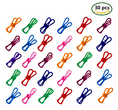 Hyamass 30pcs Assorted Color Multi-purpose Clothesline Utility Clips, Steel Wire Clips