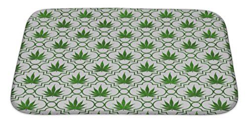 Gear New No Slip Microfiber Memory Foam Green Marijuana Leaf Pattern Repeat Bath Rug Mat, 34" X 21"