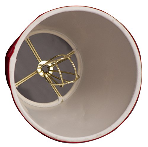 Studio : Royal Designs, Inc. Publisher : Royal Designs, Inc. Binding : Tools Home Improvement Product Description This shade is a part of Royal Designs, inc.?Holiday?chandelier shade collection is perfect for anyone who is looking for a simple yet stunning lampshade. Royal Designs has been in the lampshade business since 1993 with their multiple shade lines that exemplify handcrafted quality and value. Exterior fabric:?hand tailored silk-type shantung?(except linen, mouton, burlap faux rawhide fabrics)interior lining: off-white styrene lining?(black, burlap faux rawhide fabrics have gold lining)clip:?features?clip-on fitter?designed to fit?over a candelabra bulb base?(most shades available with?double clip-on)trim:?top and bottom trim?(single or double)frame:?brass frame?that is also?rust resistant bulb: suggested maximum wattage is?60-watt?candelabra bulb (we suggest using dimmer switch)height is?measured by vertical height?from top to bottom, not slant of the shade. 0