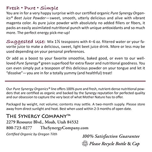 Pure Synergy Organics Beet Juice Powder with Naturally Occurring Nitrates 6.35oz by The Synergy Company