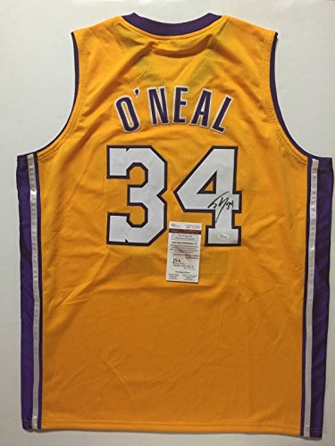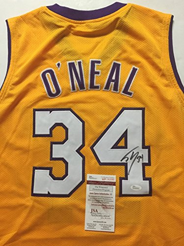 Autographed/Signed Shaquille Shaq O'Neal Los Angeles Lakers LA Yellow Basketball Jersey JSA COA