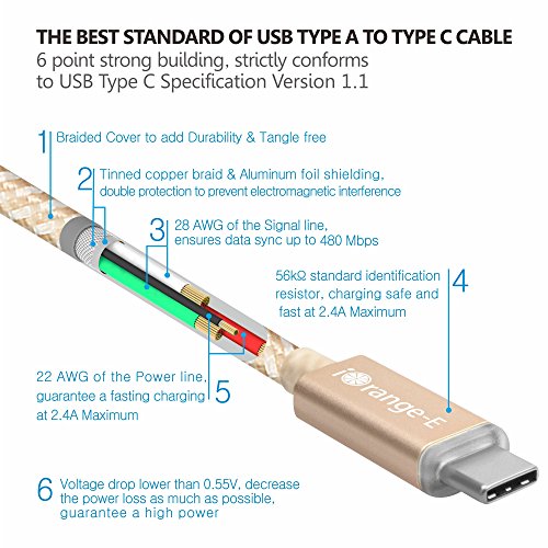 -. Title : Type C Cable, iOrange-E 6 Ft Braided Cable with LED Indicator