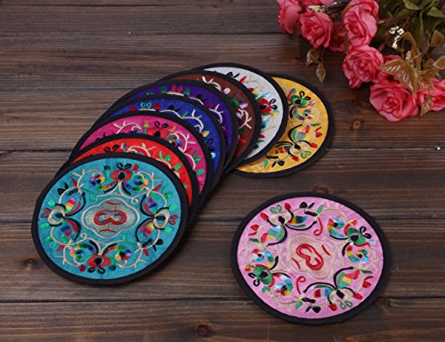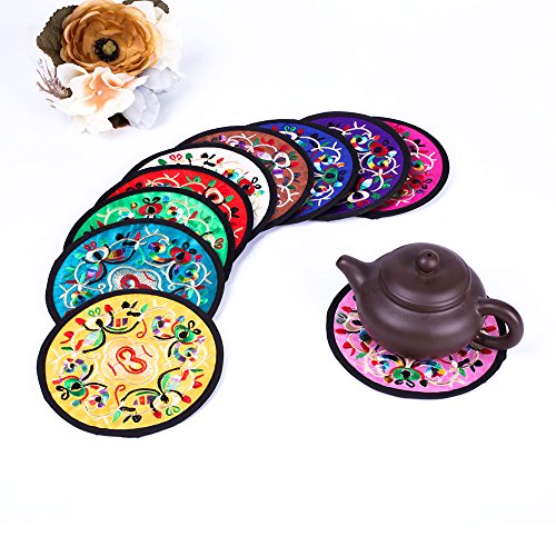 Coasters for Drinks,Vintage Ethnic Floral Design Fabric Coasters Value Pack, 10pcs/Set, 5.12"/13cm (Mixed Colors)