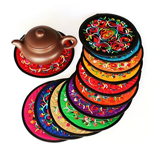 - Includes: 10pcs/Set round durable cloth placemats/coasters;Diameter/Coaster Width: 5.12 inches (13 cm);Ideal for dressing up your serving tray.