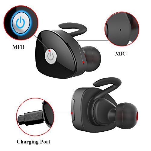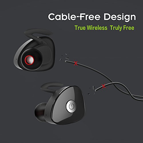 -. Feature : ?[Truly Wireless Earphones]: Amazing TWS (True Wireless) technology allows two mini earbuds keep connected with no cable. No microphonic effect, and enjoy your stereo music freely while walking, running, workout, etc.