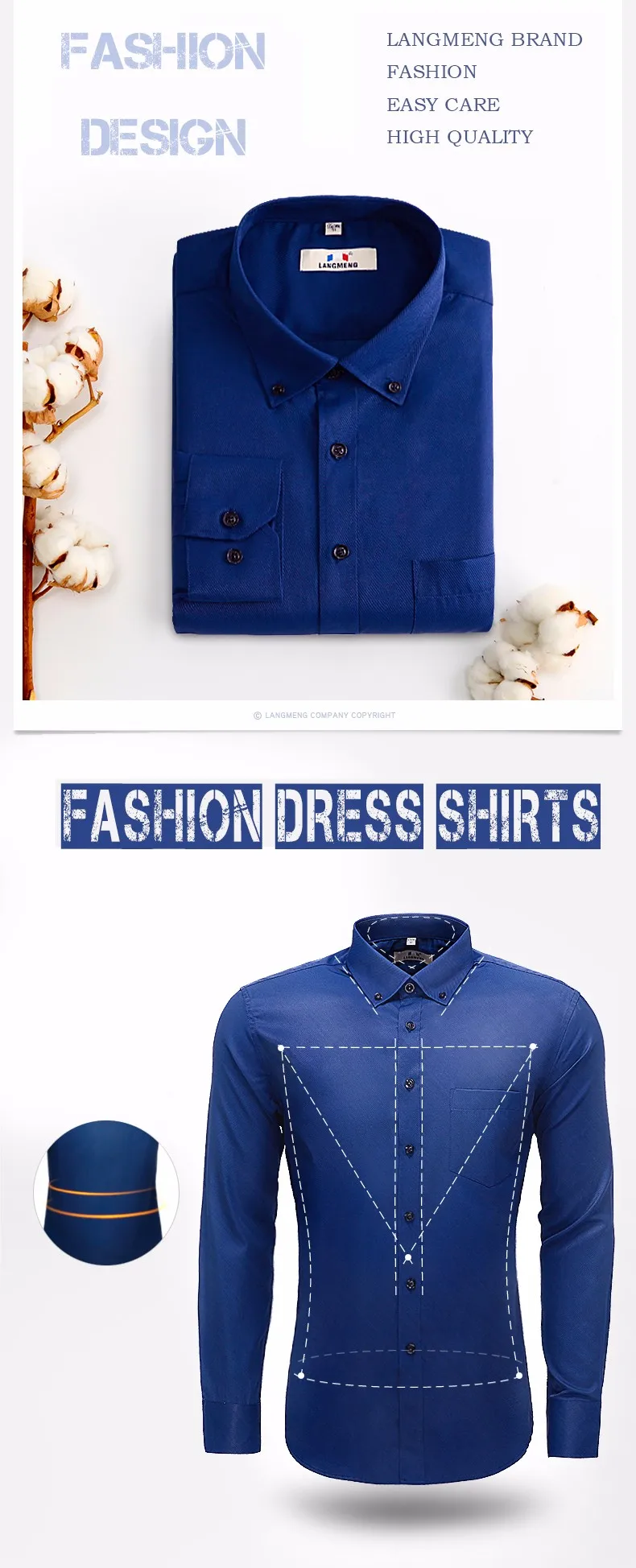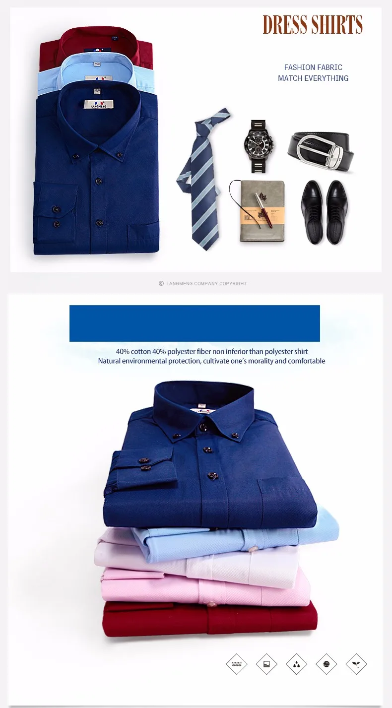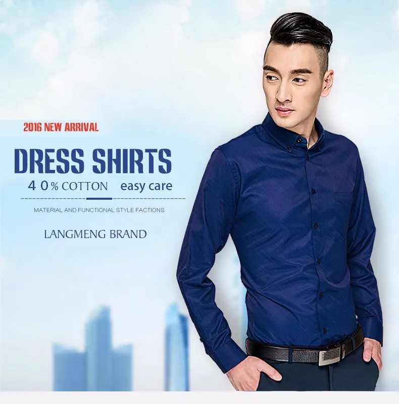 Langmeng Men Dress Shirt Solid Color Social Men Slim Fit Mens Long Sleeve Brand Casual Shirt Chemise Homme Camisa Masculina