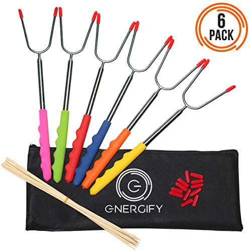 - ROAST IT LIKE A PRO – Transform ordinary marshmallow into a special delicacy which has enhanced flavours, is crispy from outside, and soft, gooey and melting from inside – Energify™ Telescopic Marshmallow Roasting Sticks, with indentations on handle for superior grip, come in a Set of 6 pieces (different handle colors), and make roasting convenient, safe and more fun – be it marshmallows, S’mores, sausages, meat, hotdogs, vegetables or fruits.